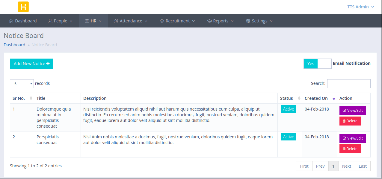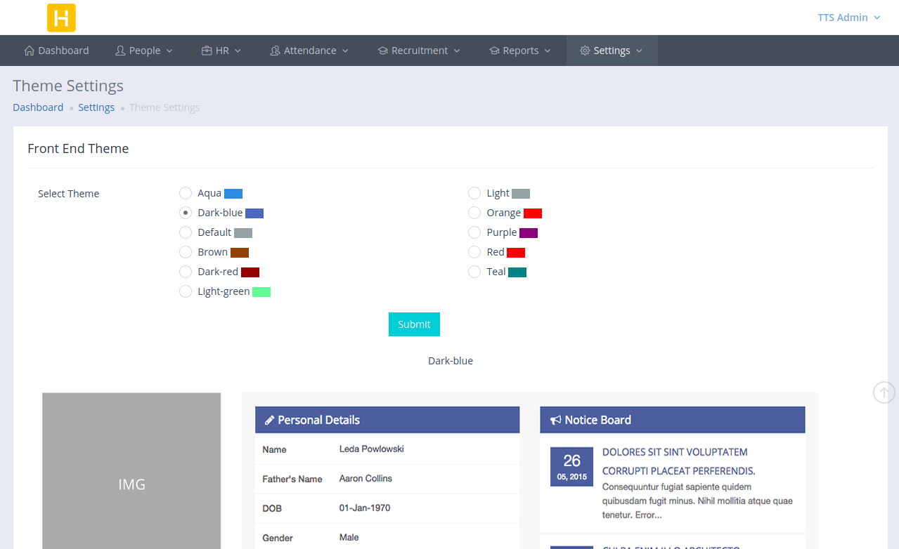 HRM focuses on providing easy access to information. Admin dashboard has common stats to give a good overview of what's going on in the organization. Stats like total employees, total departments, awards, attendance, company expenses, current month birthdays, awards list, etc. are available at hand on the dashboard itself.